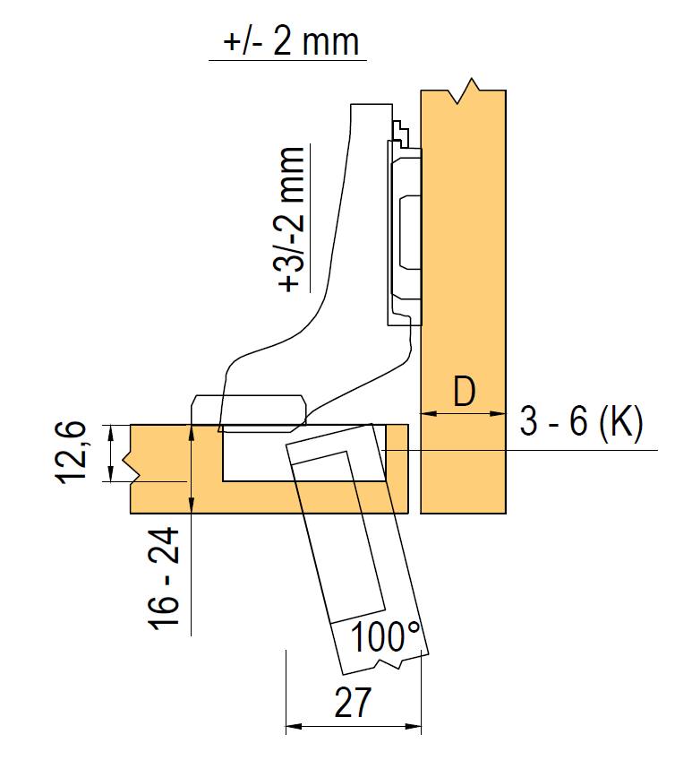 Závěs s úhlem otevření 100°, miska k našroubování. Tlumič dorazu BLUMOTION k naklapnutí na ramínko závěsu 973A0700 - 12386. základní podložky: ostatní viz katalog Blum vrut 173L6100 - 12306, euro 173L8100 - 12318, štelování excentrem 173H7100 - 12340, expando 174E6100.01 - 12302.Doplňkové parametry
