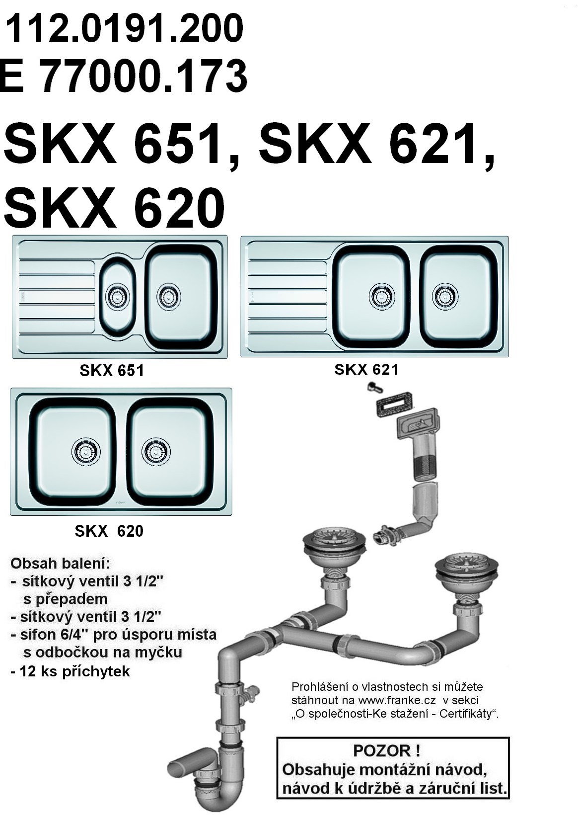 Franke Spark SKX 621 NerezSpodní skříňka od 800 mm