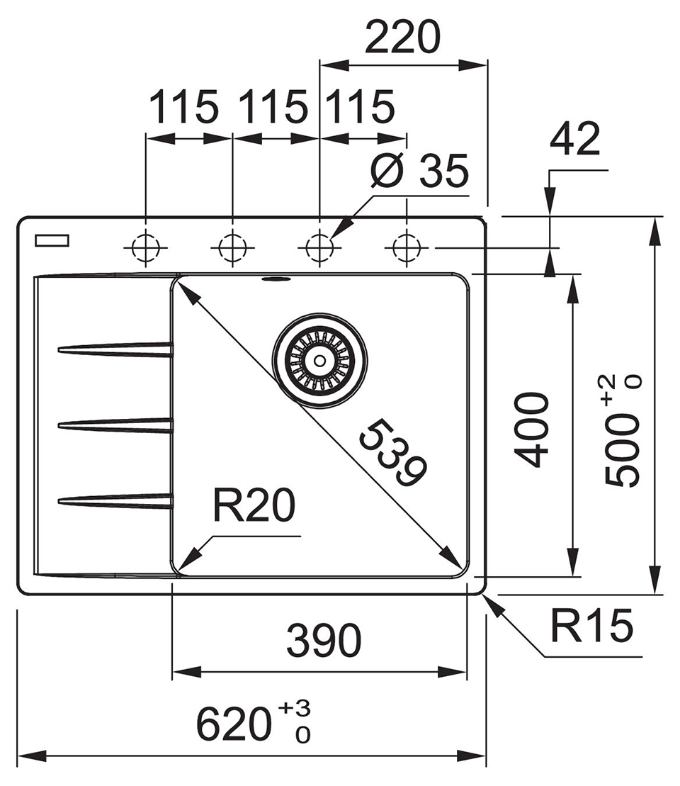 Franke set G215MČ (dřez CNG 611-62 TL/2 Matná černá + baterie FC 3055.901 ORBIT Matná černá)odkap vpravo