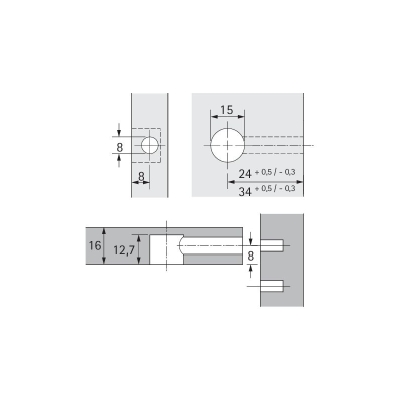 Excentrické spojovací kování Rastex 15. Pro tloušťku dílce 16 mm. S osazením. Zinkový odlitek.Doplňkové parametry