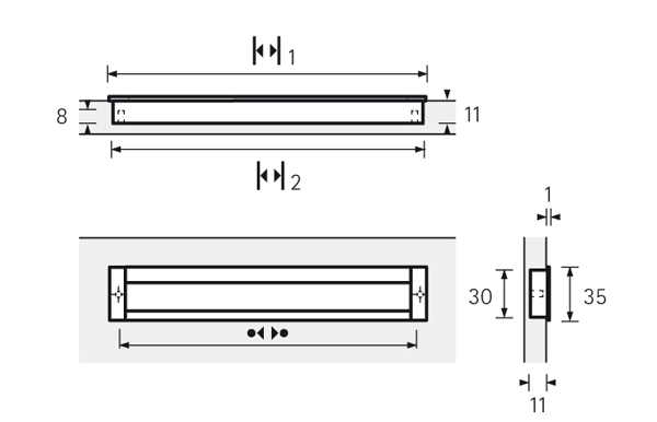 Úchytka NIDUM délka 111 mm, rozteč vrtání 96 mm. K zapuštění do materiálu. Povrchová úprava hliník.Doplňkové parametry