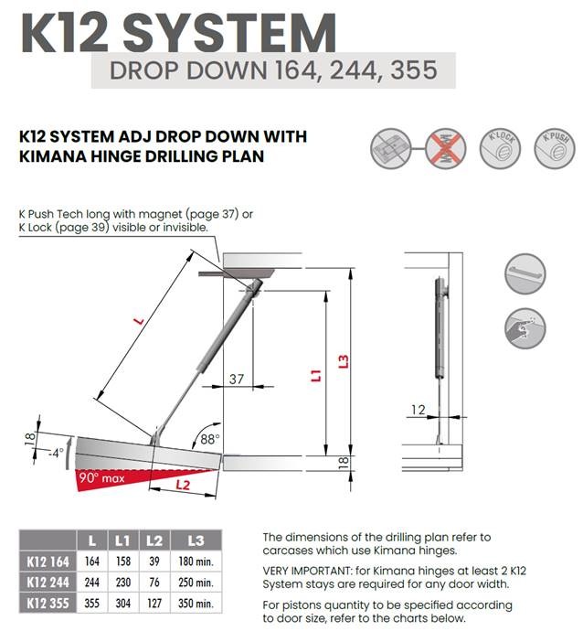Minimalistický design. Průměr pístu pouze 12mm. Doporučujeme v kombinaci s bezpružinovými závěsy KIMANA. Lze také velmi efektně otevírat bezúchytkově v kombinaci se systémem K-PUSH. V sadě úchyt do korupusu a na dvířka do otvoru o průměru 15mm a navíc úchyt na dvířka na vruty.