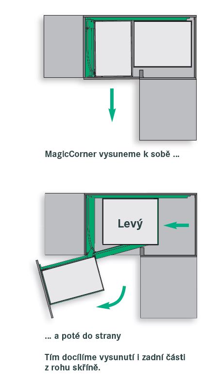| Typ rohové skříňky: | Výsuvný mechanismus |