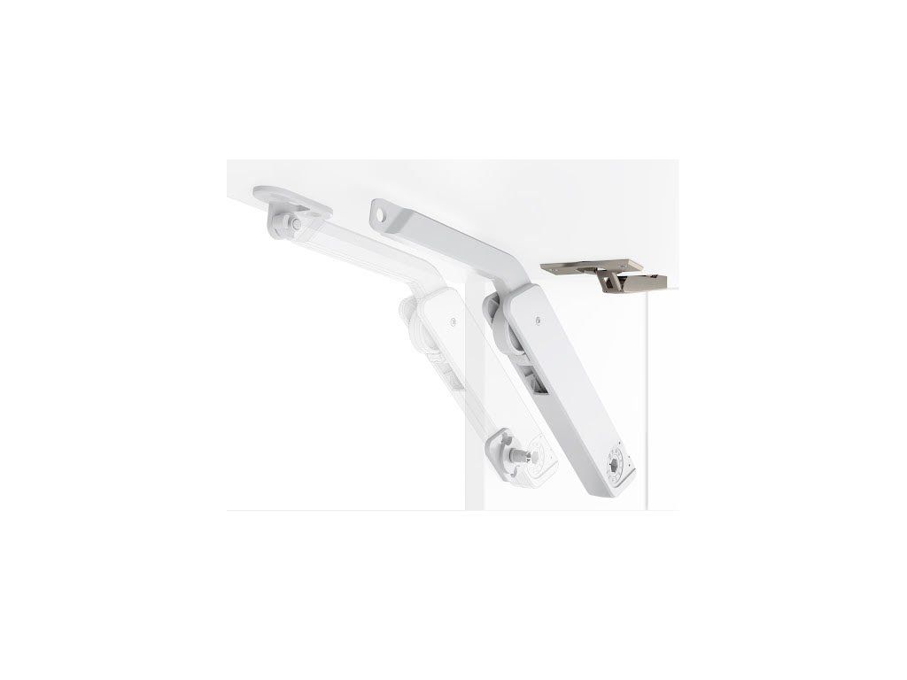 Výklopný mechanismus pro lehčí jednodílné dveře otevírané směrem nahoru. Dveře je potřeba zavěsit na miskové závěsy (nejsou součástí). Mechanismus pomáhá dveře zvedat a přidržovat v otevřené poloze a také zpomaluje zavírání. Jedná se o spolehlivé, ale ekonomicky zajímavé řešení od firmy Kessebohmer. Výklopný mechanismus je vyroben z technologického plastu. Součástí sady jsou úchyty na dveře a na korpus skříňky a také klíč k seřizování síly otevírání. Typ mechanismu je třeba vypočítat podle výšky a hmotnosti dveří. Mechanismus je možno otevírat také bezúchytkovou metodou za použití Push-for-open pístu (není součástí).Doplňkové parametry