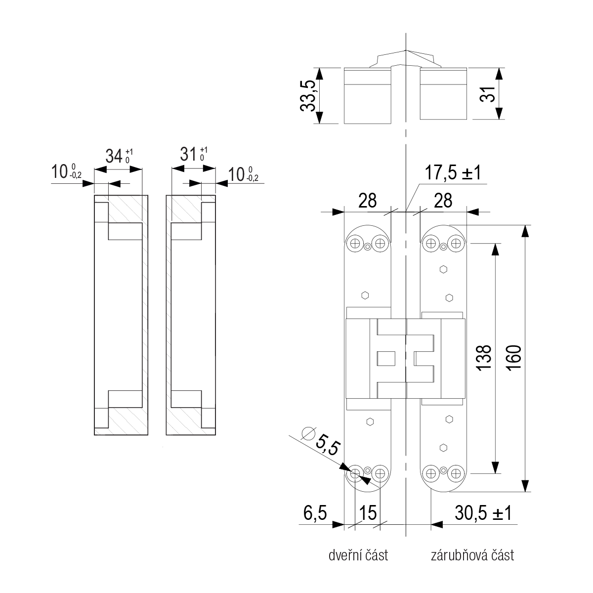 Závěs pro bezfalcové dveře s 3D seřízením . výškově a předozadně +/- 3mm, stranově +/- 1mm. Maximální nosnost dveří je 80 kg pro 2 kusy závěsů. Montážní otvor shodný jako pro Tectus 340D. Krytky a šroubky jsou součástí. Volitelné příslušenství jsou příchyty pro obložkové či ocelové zárubně. Montážní šablona 256045 (rám) + 256047 (vklady)Doplňkové parametry