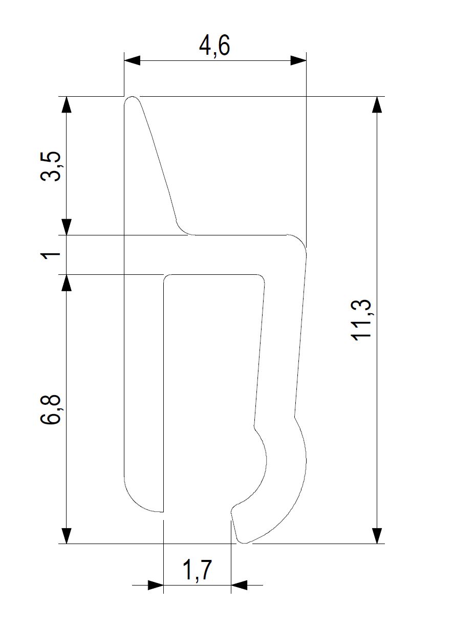 Krajní profil pro příborníky tl.1,6 - 2,5 mm (například pro příborníky Scoop II, Move, Strong).Délka profilu 500 mm.