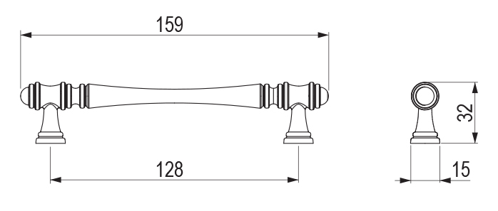 Kovová úchytka s roztečí 128mm, v celkové délce 159mm. Šířka: 15mm Výška: 32mmNesprávné čištění úchytek přípravky obsahujícími alkohol nebo abrazivní látky může způsobit poškrábání, vznik skvrn a poškození ochranné vrstvy výrobku a vést ke korozi materiálu. Na následné reklamace tohoto druhu nebude brán zřetel.