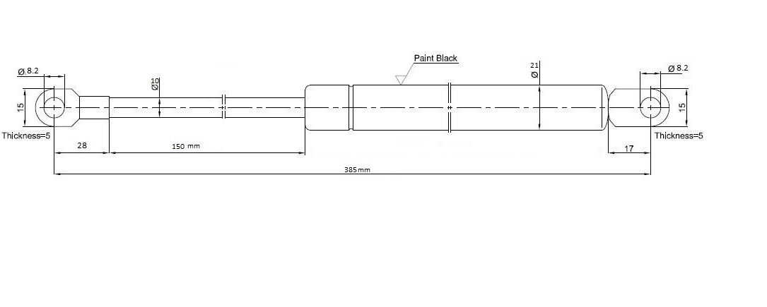 Délka plynových pružin 350N, 450N a 500N je 385mm a úhel otevření cca 45°.