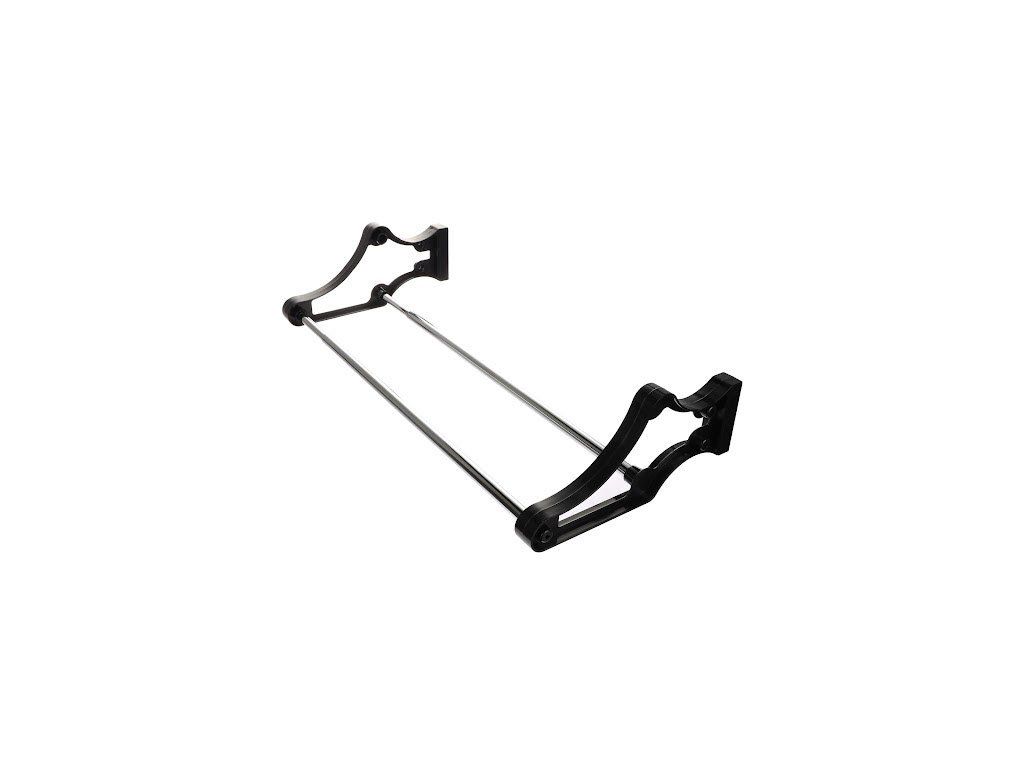 Police na boty s montáží na zadní stěnu. Konstrukce z plastových úchytů a chromovaných trubek. Konstrukce se dá roztáhnout podle šířky skříně. Montáž se provádí pomocí příchytů na zadní stěnu skříně. Na příchyty se pak nasunou plastové bočnice police, mezi kterými jsou trubky police.Doplňkové parametry