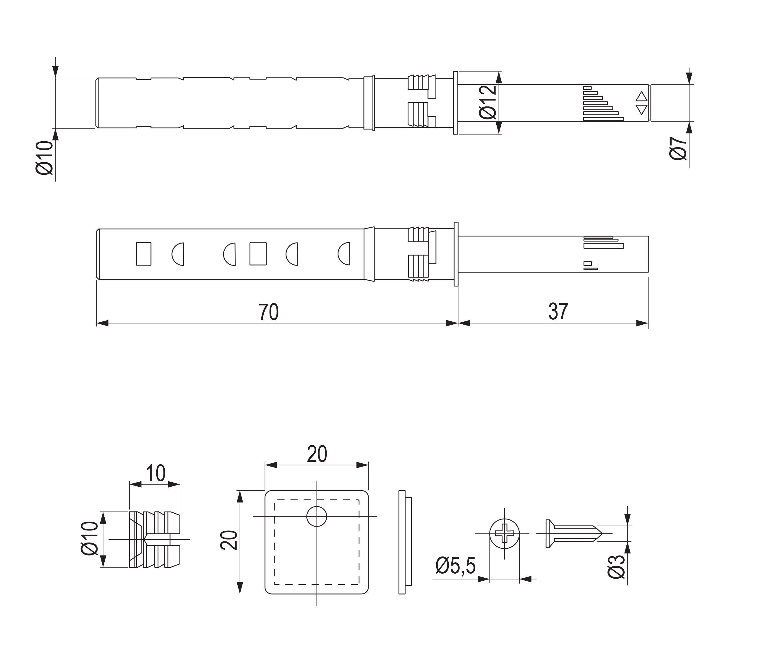 StrongHinges pístek pro bezúchytkové otevírání dvířek s magnetem k zavrtání šedý