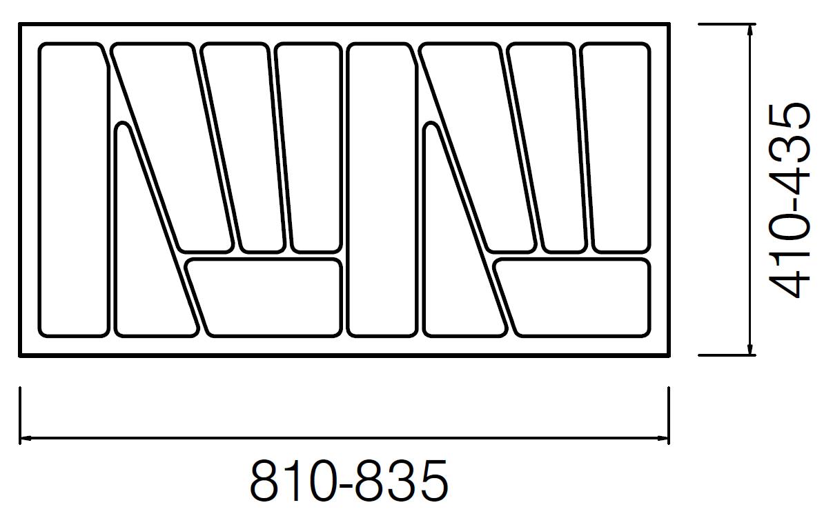 výška přepážek je 40mm a celková výška příborníku je 50mm