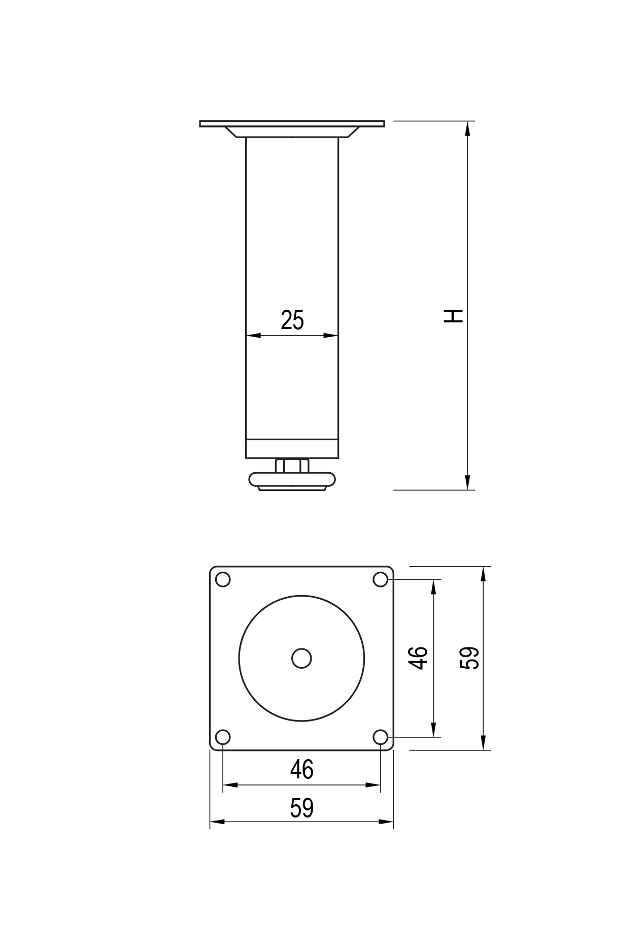 Nábytková noha kovováPrůměr 25 mm, výška 100 mm