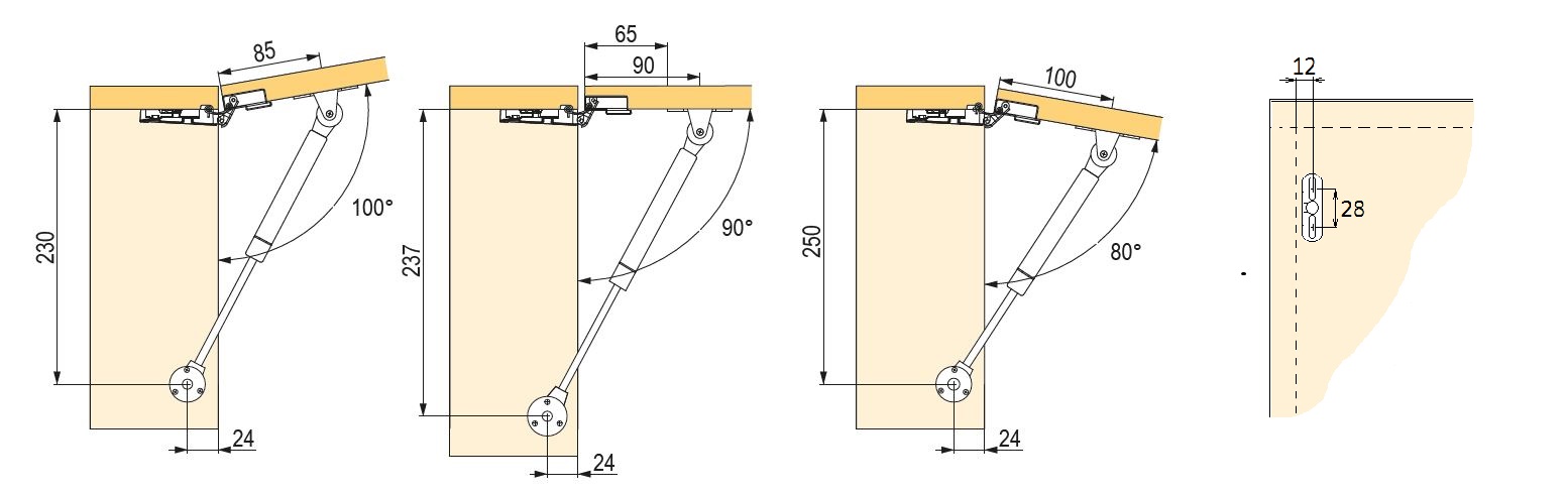 Plynokapalinová automatická vzpěra 100N s úchyty. Barva šedo-stříbrná. Případně jen pro alu-rámeček přidat příchyt 276001Doplňkové parametry
