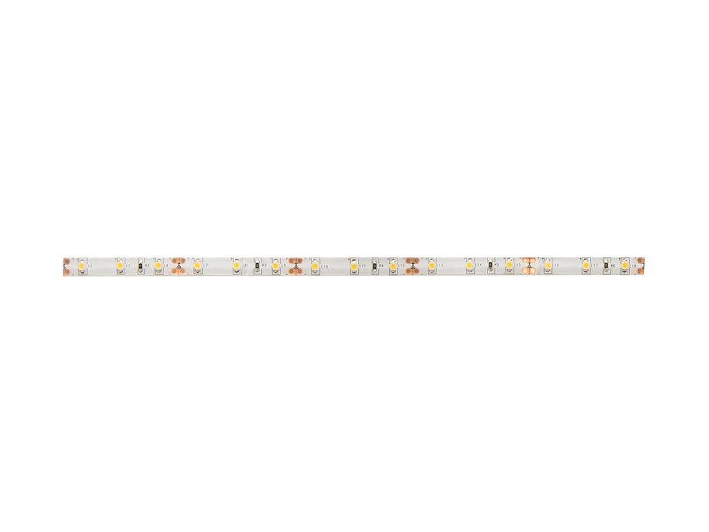 POZOR - tento typ LED pásku může svítit pouze 2 hodiny v kuse a poté musí být na min. 30 minut vypnut, jinak může dojít k přehrátí a poškození čipů. Použití: elastický LED pásek s vysoce svítícími diodami v metráži. Typ LED diody - 3528. Připevnění pomocí oboustranné lepící pásky 3M. Barva světla: teplá bílá Śířka: 8mm Tloušťka: 2,3mm. Výkon: 4,8W/m (60 diod na 1m). Světelný tok:450lm/m. Napětí: 12V. Baleno v rolích po 5 m, rozbalitelnost po 1 m ( lze krátit v označených místech po 3 diody, co cca 5cm, v těchto místech lze i opětovně propojovat). Při odběru kratších LED pásků krátíme na nejbližší kratší dělící místo. Tolerance je cca 1cm na metr délky. Připojování kabelu: pájením nebo rychlospojkou. Voděodolný - IP65.Doplňkové parametry