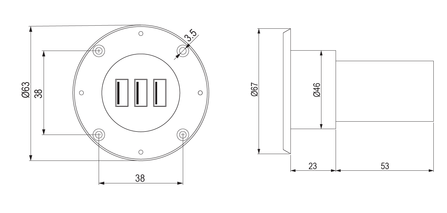 Chytrý výrobek: Moderní způsob, jak doplnit nábytek o funkční doplňky v dnešní době plné elektroniky a nutnosti nabíjet. Nabídka zahrnuje klasické USB nabíjení - spojení telefonu a nabíječky přes kabel. Kulatý design, v nabídce ve více barevných variantách, 3 USB výstupy, jednoduchá montáž - díky kuželovému tvaru těla se nabíječka zafixuje pouhým zatlačením do otvoru, kabel s vidlicí o délce 1,5 m pevnou součástí nabíječky