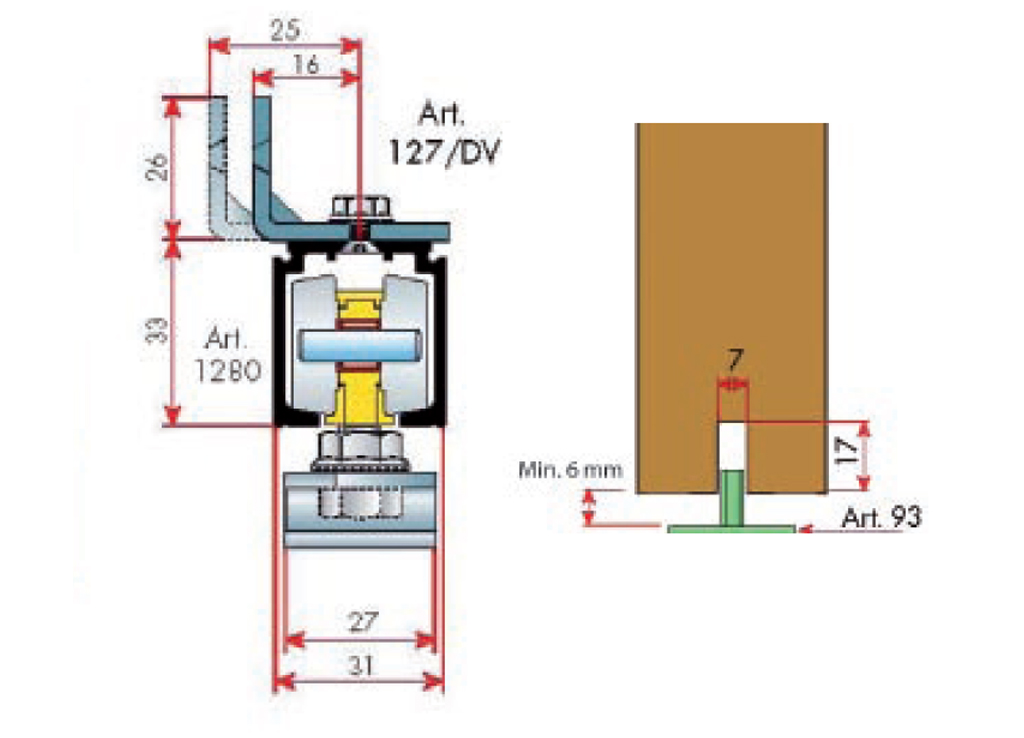 Kování pro posuvné inter. dveře do 120 kg. Včetně 5 ks příchytů profilu. Profily v délce 2m (DT303), 3m (DT304) a 6m(DT174).Doplňkové parametry