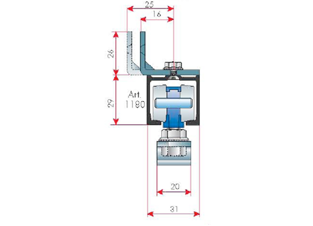 K uchycení profilů DT303, DT304 a DT174 (typ vedení Art. 1280), montáž co cca 46 cm.Doplňkové parametry