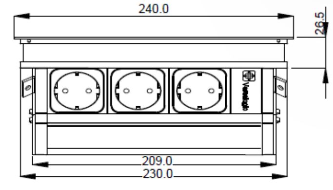 Kompletní kancelářský systém s 3 el. zásuvkami, včetně hliníkové průchodky 240x120 mm a uchycení, který se obvykle umisťuje do pracovní plochy stolu .Pro připojení k el. síti, je nutné koupit připojovací kabel podle potřeby. Délka 2m (kód 179748), nebo délka 3m (kód 179749).